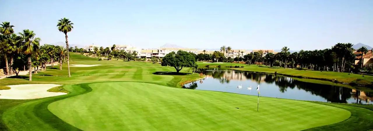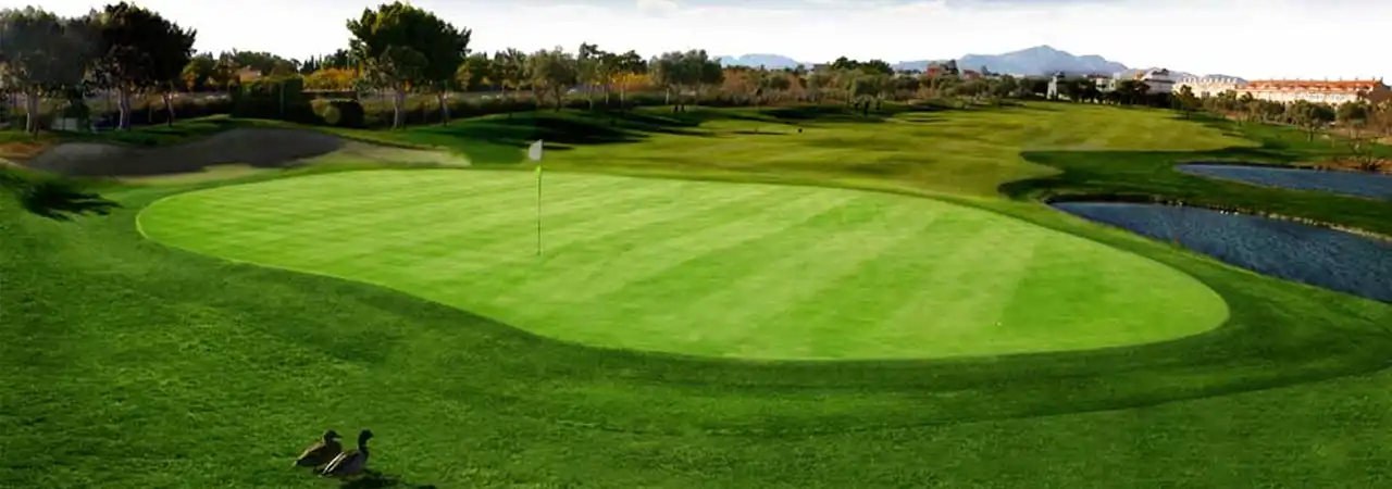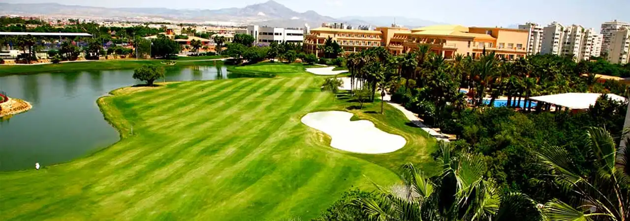 Designed by Seve Ballesteros in 1998, the course is quite flat. It runs through a residential complex which is near the beach of Playa de San Juan in Alicante. Large trees overlook the wide fairways as the course becomes increasingly more difficult as the round goes on.