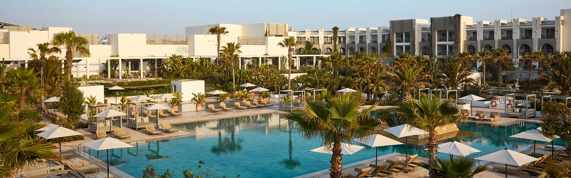 Sofitel Agadir Thalassa Sea & Spa's private beach and seawater spa, your stay will bring you vitality, tranquility and serenity. Discover the magic of the ocean where wellness and rejuvenation are at the heart of everything we do. Facing the Atlantic Ocean, this 5-star Moroccan-inspired hotel with its pool, lush patio and calm and gentle atmosphere offer a timeless and unforgettable experience. The resort has 173 rooms, including 48 suites and 2 villas , and three restaurants serving Moroccan cuisine. Extend this experience of well-being at the thalassotherapy centre with its beauty and fitness area.