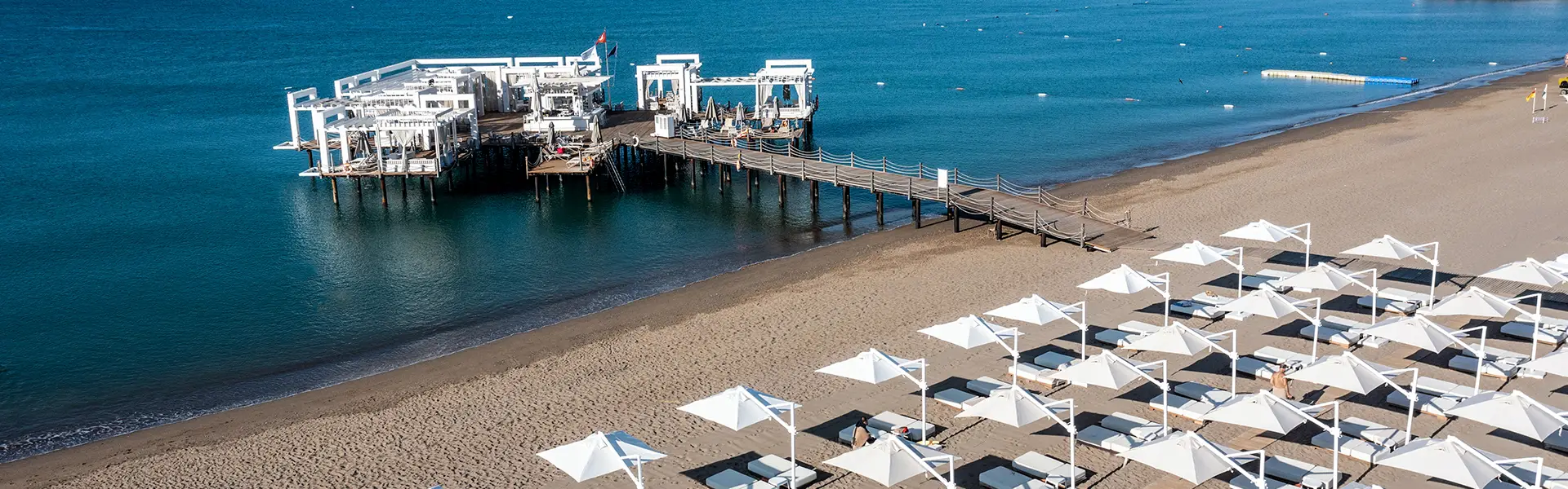 The stylish pier bar provides the perfect venue for relaxing while watching the turquoise waves of the Mediterranean or the beautiful sunset scenery.